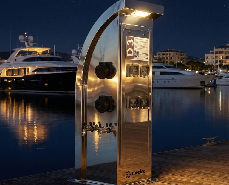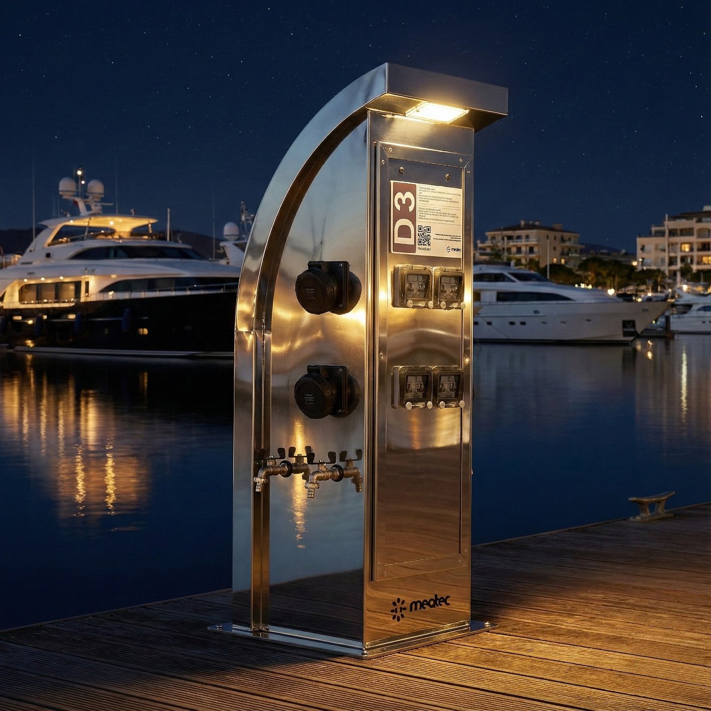High-performance service pedestals designed for the world’s most prestigious marinas.